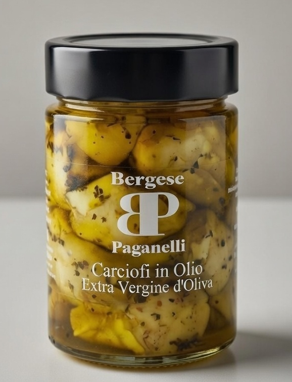 INGREDIENTI: carciofi 65% (origine: Italia), olio extra vergine d’oliva 34%, (origine: Italia), sale, prezzemolo, peperoncino, aceto di vino.